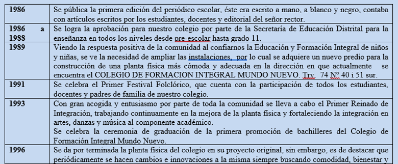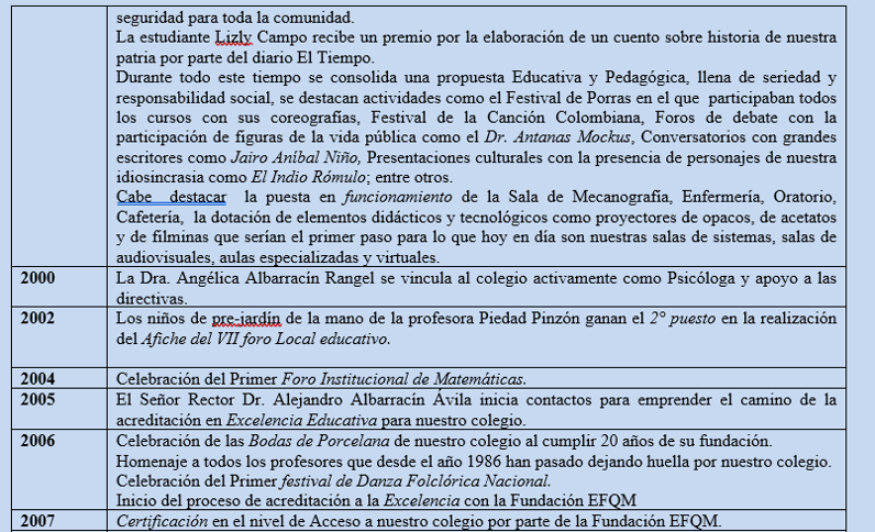 Al conocer de la historia de nuestro colegio, tenemos la oportunidad de familiarizarnos más con el segundo hogar de nuestros estudiantes, de acercarnos con más confianza a nuestra institución, de valorar y querer más este proyecto, esta realidad que representa nuestro amado colegio; por eso queremos compartir con toda nuestra comunidad algunos hechos de gran importancia en esta historia…, historia que seguimos creando continuamente: